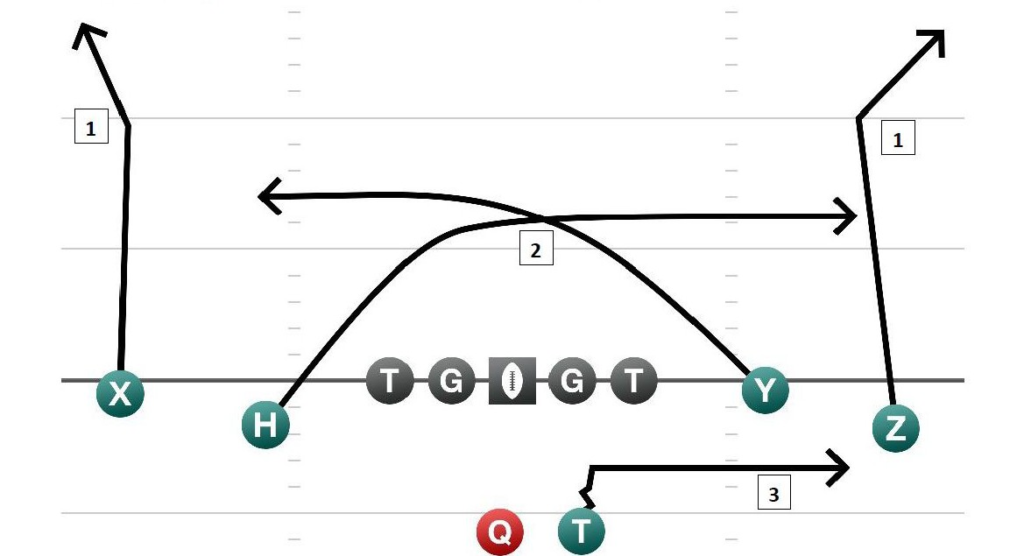 The success of the play depends on the timing and spacing of the crossers.